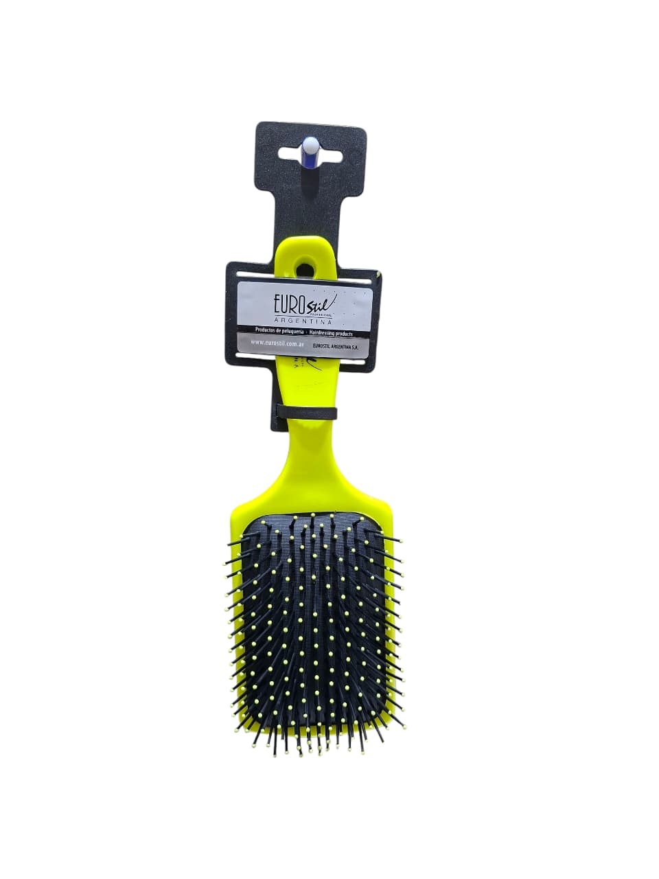 El Cepillo Rectangular Grande Eurostil Plástico Peluquería, con código 50156, es una herramienta esencial para el cuidado del cabello. Este cepillo neumático está fabricado completamente en plástico, incluyendo tanto el cuerpo como las cerdas y el mango, lo que garantiza durabilidad y ligereza. Sus púas dobles con bolitas de plástico en la punta facilitan un desenredo suave y efectivo, evitando tirones y daños en el cabello. Ideal para uso profesional en salones de peluquería, este cepillo plano y rectangular es perfecto para desenredar y alisar todo tipo de cabellos. No es iónico ni térmico, lo que lo hace adecuado para un uso diario sin complicaciones. Su diseño ergonómico y funcional asegura un manejo cómodo y eficiente. Este cepillo es nuevo y de la reconocida marca Eurostil, garantizando calidad y rendimiento en cada uso.
