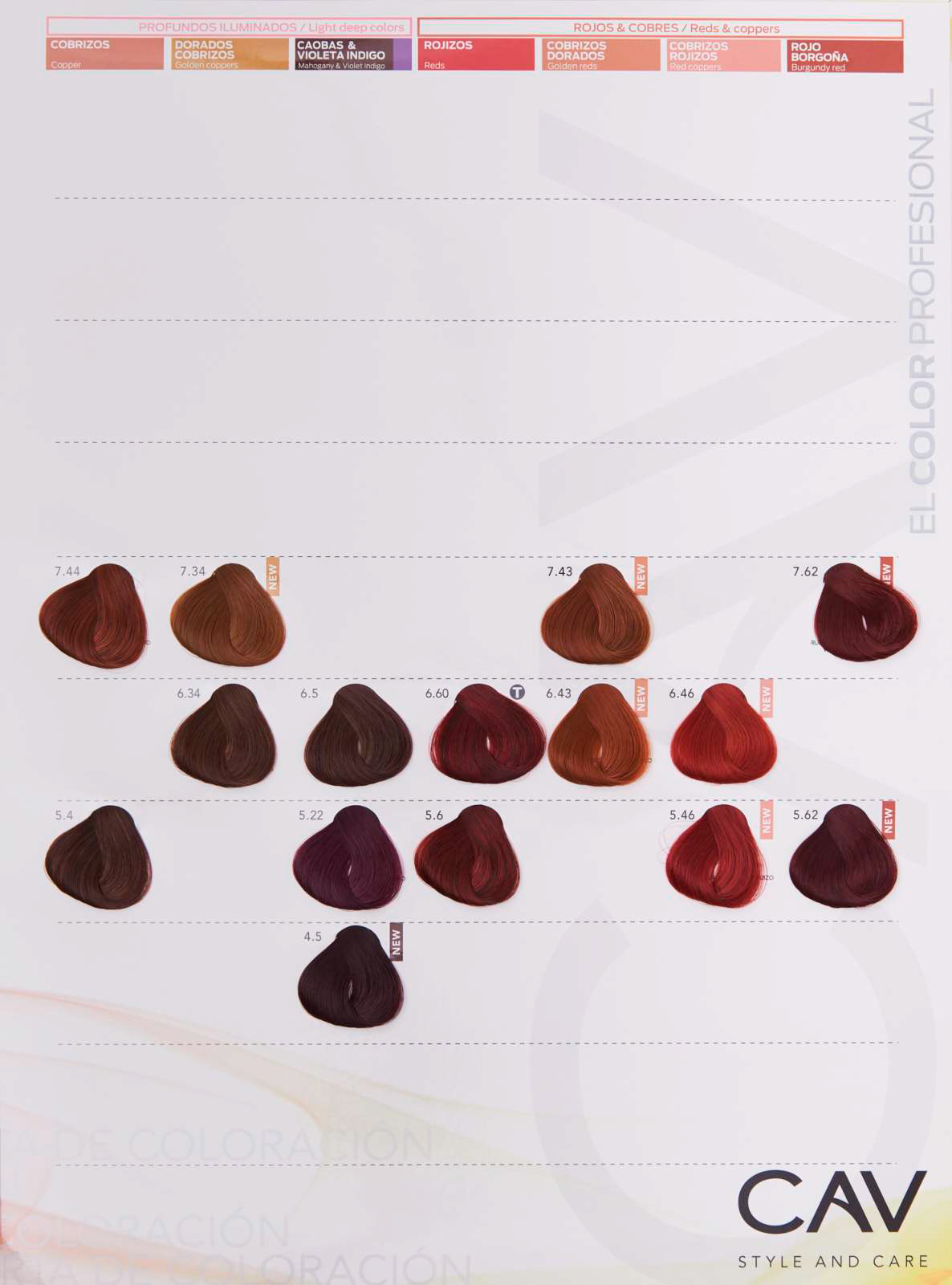 Proporción de mezcla 1 + 1/2 (Ej. Mezclar 60 grs de coloración en crema con 90 ml de emulsión oxidante CAV) MAYOR DURABILIDAD PIGMENTOS PREMIUM FIDELIDAD DE COLOR AMPLIA CARTA DE COLORES